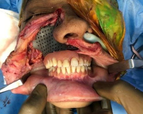 The case of the young girl was carried out by Dr. Siddhart Shah, Dr. Shruti Soni & Dr. Pratik Shah. After studying the patient’s CT scan images, the patient required removal of entire maxilla including alveolar process, orbital floor with hemi palate and zygomatic process.